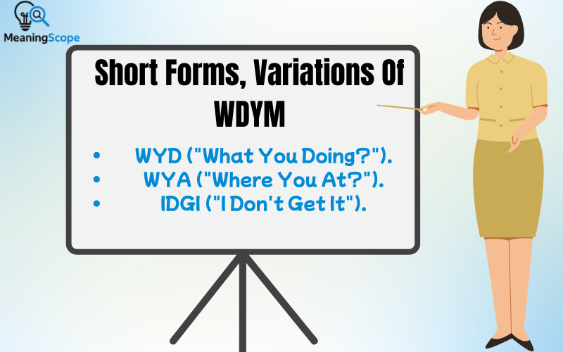 WDYM means “What Do You Mean?” – used to ask for clarification on something confusing.